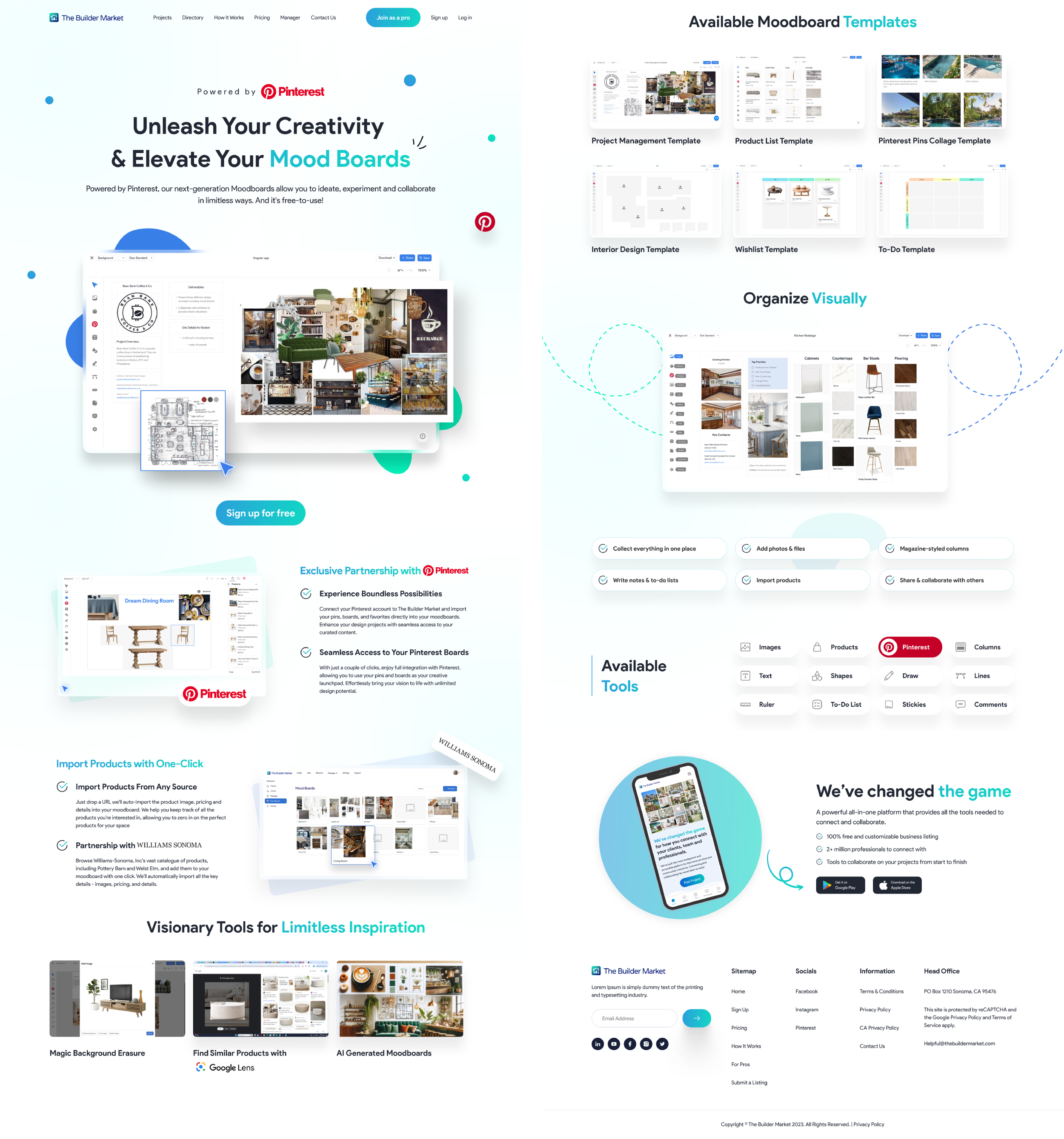 Introduced Pinterest red + Builder Market blue gradients for contrast and recognition.